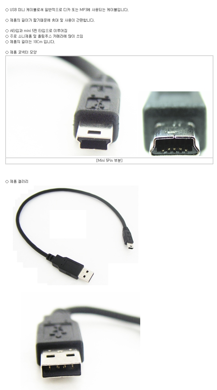 USB Á¨´õ A(M)/Mini 5P(M) http://cableguy.com/shop/mall.php?cat=007001006&query=view&no=3094