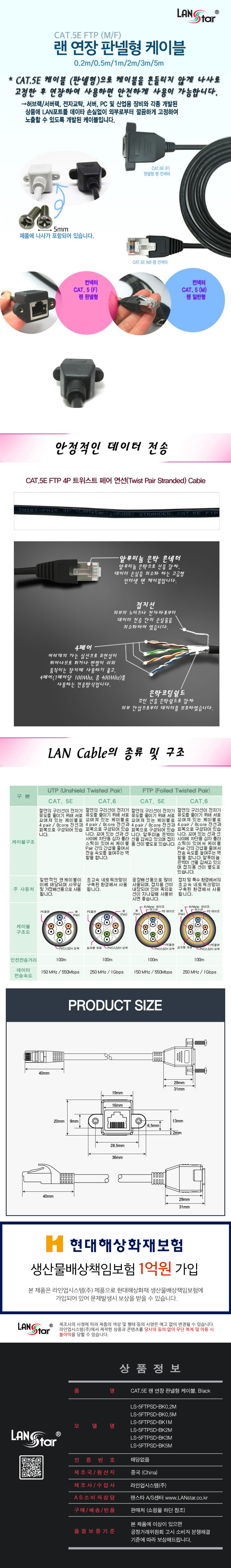 [155510]LANStar(·£½ºÅ¸) RJ 45¿¬Àå ·£ÄÉÀ̺í CAT.5E FTP ÆÇ³Ú¿ë SCREW °ËÁ¤ 5¹ÌÅÍ(5m) [LS-5FTPSD-BK5M]