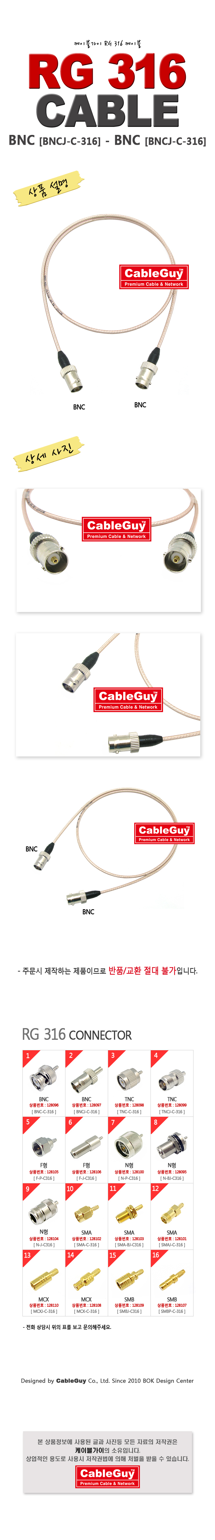 | ¡á ÄÉÀÌºí°¡ÀÌ(CableGuy) RG-316(50¿È)ÄÉÀ̺í BNC(¾Ï)-BNC(¾Ï)Àº 0.5m~15m±îÁö ÀÖ½À´Ï´Ù ¡á |