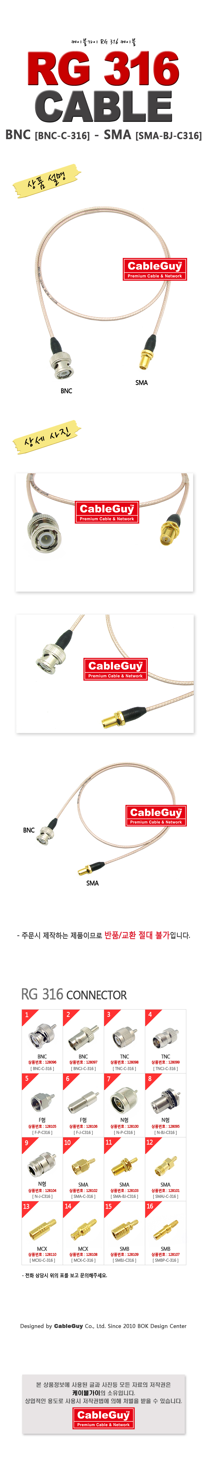 [128607]ÄÉÀÌºí°¡ÀÌ(CableGuy) RG-316(50¿È)ÄÉÀ̺í BNC(¼ö)-SMA(³ª»ç½Ä ¾Ï/¾ÏÇÉ) 12¹ÌÅÍ(12m)