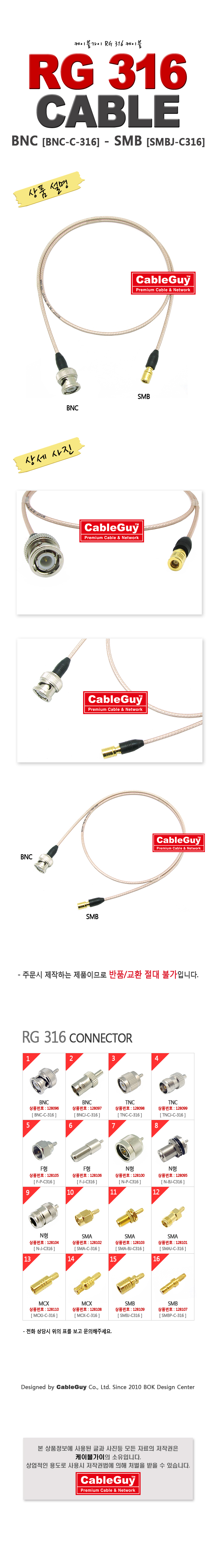 | ¡á ÄÉÀÌºí°¡ÀÌ(CableGuy) RG-316(50¿È)ÄÉÀ̺í BNC(¼ö)-SMB(¼ö/¾ÏÇÉ)Àº 0.5m~15m±îÁö ÀÖ½À´Ï´Ù ¡á |
