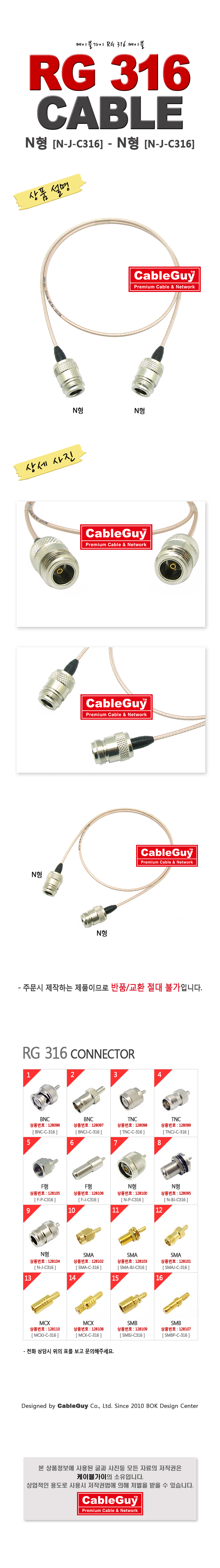 | ¡á ÄÉÀÌºí°¡ÀÌ(CableGuy) RG-316(50¿È)ÄÉÀ̺í NÇü(¾Ï)-NÇü(¾Ï)Àº 0.5m~115m±îÁö ÀÖ½À´Ï´Ù ¡á |