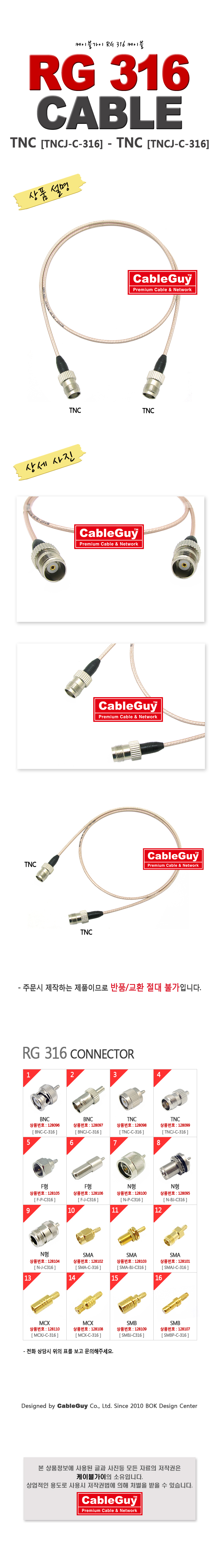 | ¡á ÄÉÀÌºí°¡ÀÌ(CableGuy) RG-316(50¿È)ÄÉÀ̺í TNC(¾Ï)-TNC(¾Ï))Àº 0.5m~15m±îÁö ÀÖ½À´Ï´Ù ¡á |