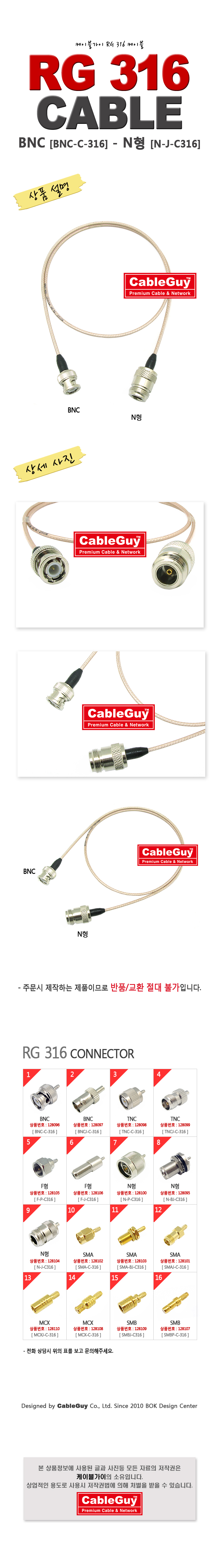 | ¡á ÄÉÀÌºí°¡ÀÌ(CableGuy) RG-316(50¿È)ÄÉÀ̺í BNC(¼ö)-NÇü(¾Ï)Àº 0.5m~15m±îÁö ÀÖ½À´Ï´Ù ¡á |